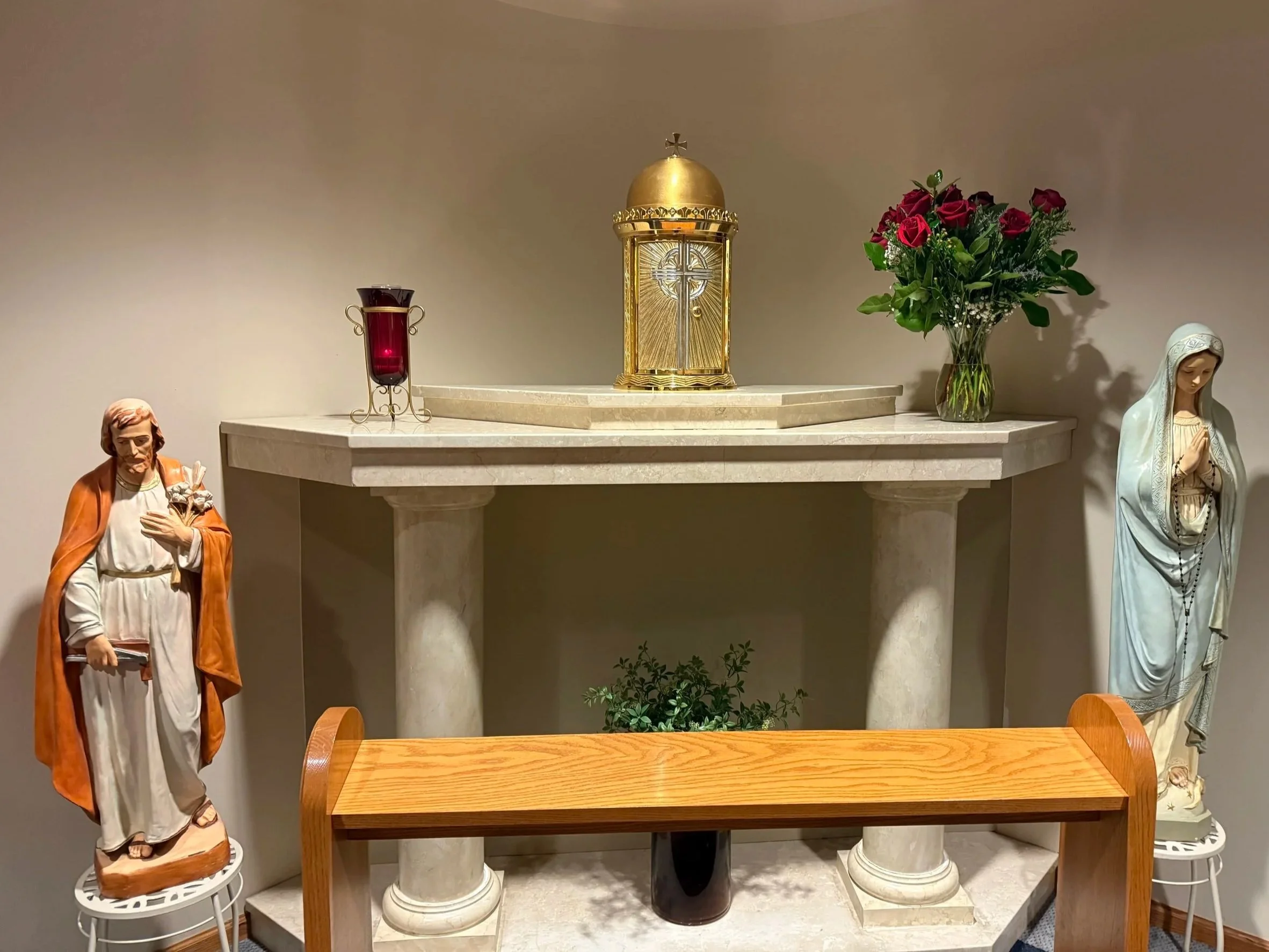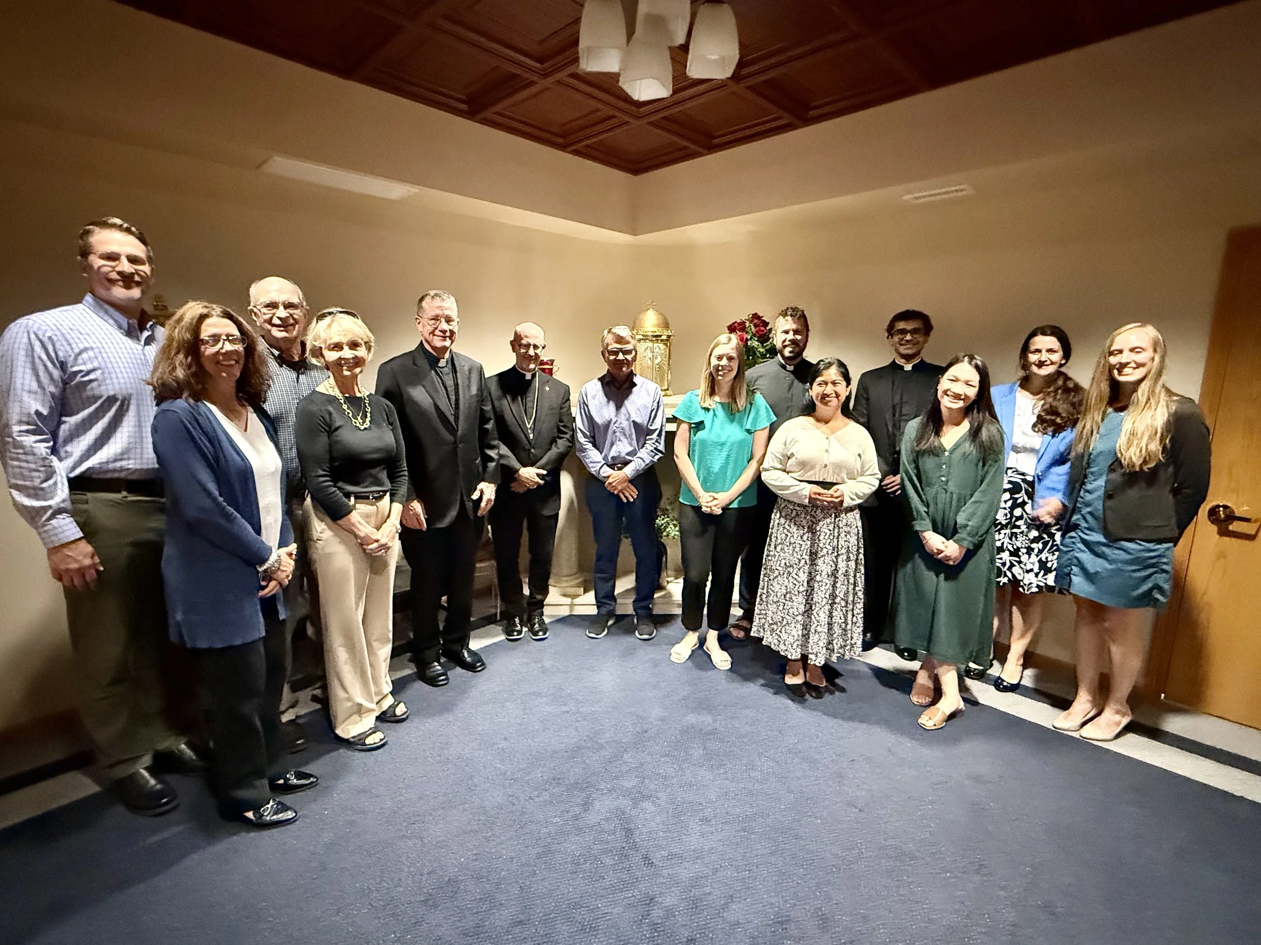 On August 1, 2025, Immaculate Heart of Mary Counseling Center (IHMCC) welcomed Bishop Conley to its new office location at 8055 O Street, Suite 301, Lincoln. Bishop Conley then celebrated Mass in IHMCC’s chapel for staff, board members, and other supporters, and reposed at the conclusion the Blessed Sacrament in the chapel’s Tabernacle. Frs. Christopher Eckrich and Joseph Walsh, from the Diocese of Lincoln, and Fr. Ryan Alemao, IHMCC doctoral intern from Divine Mercy University and the Catholic Archdiocese of Toronto in Canada, co-celebrated the Mass.
